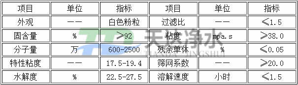 各型號(hào)聚丙烯酰胺的產(chǎn)品指標(biāo)
